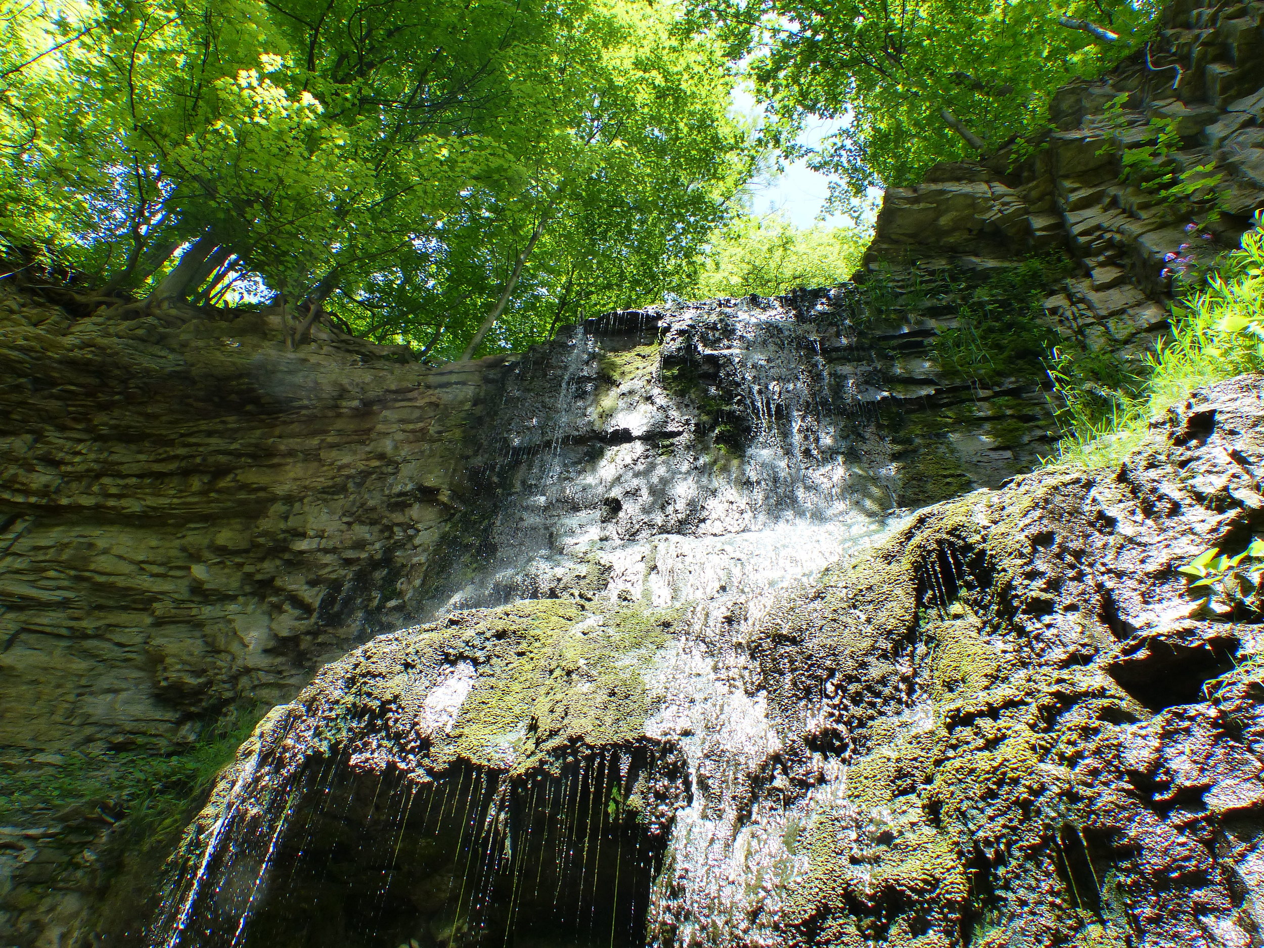 Go back up to continue on the trail. You'll see a small set of stairs. At the top, take a right and continue on the trail. The trail will take you by the stream. Keep following it and you'll reach Upper Sydenham Falls.