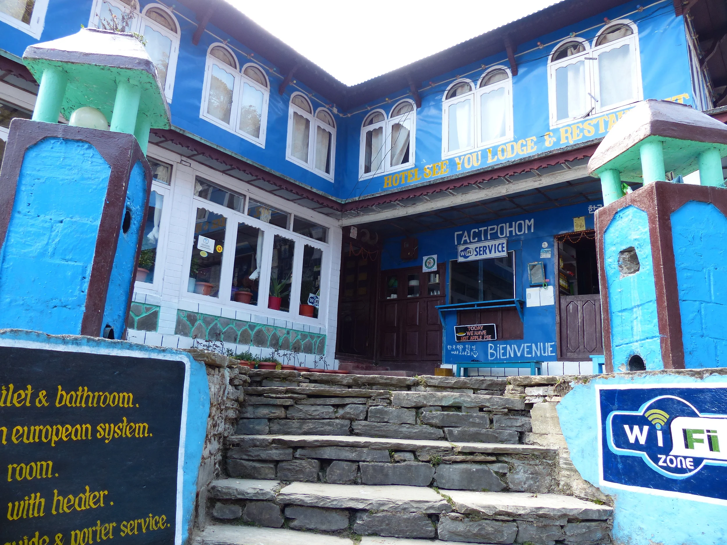 This is the highest altitude we stayed at so it's really chilly here. I ended up wearing most of my clothes to sleep. The food is really expensive here too. For example, Korean instant noodles were 480 NPR and dal baht was 550 NPR.