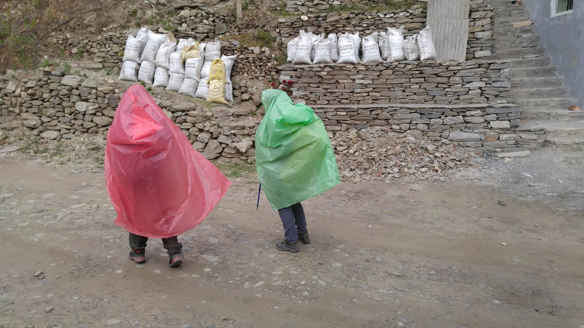 Luckily, there was a shop just after Chomrong that sold plastic ponchos for 100 NPR. They're basically thick garbage bags that you need to cut open and wrap around yourselves. Generally, only locals use this method, so having a guide was really helpful here.
