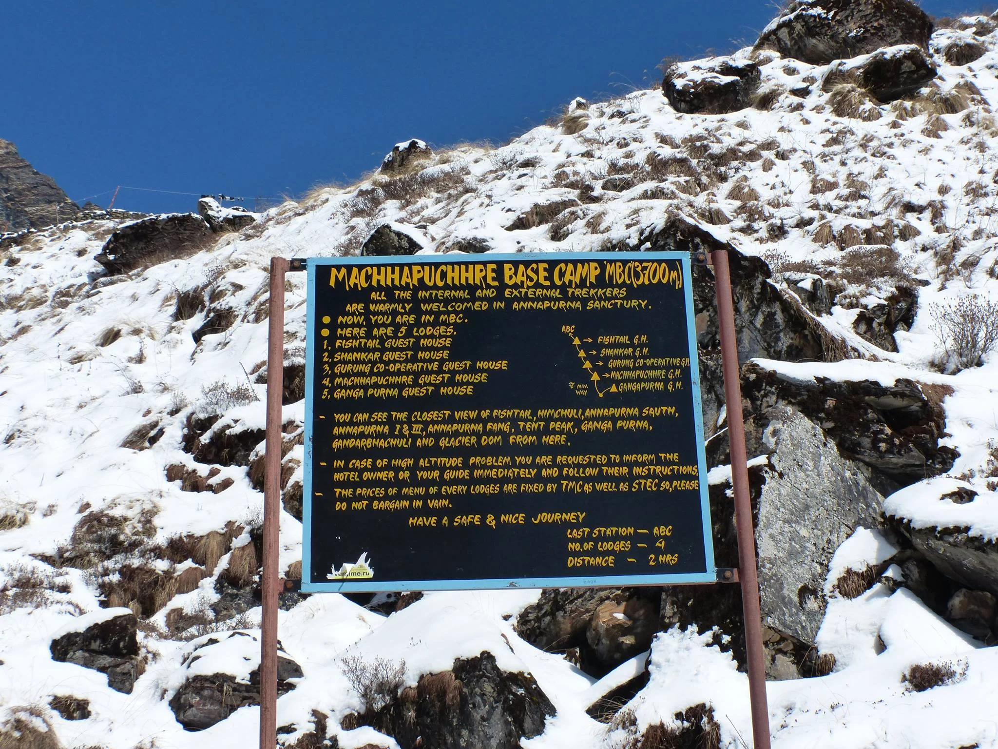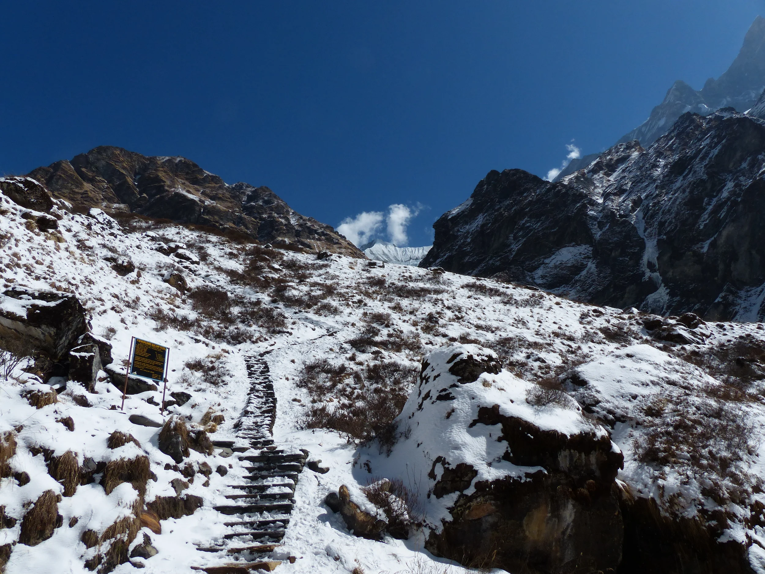 This was a short and tough but very scenic hike. The terrain was pretty rocky as we walked by the river. Keep in mind, there's an avalanche risk area between Deurali and MBC. So, make sure to head out early in the morning while the temperatures are low. Just before MBC, it gets really steep. Be really careful if there's snow and ice on the trail.
