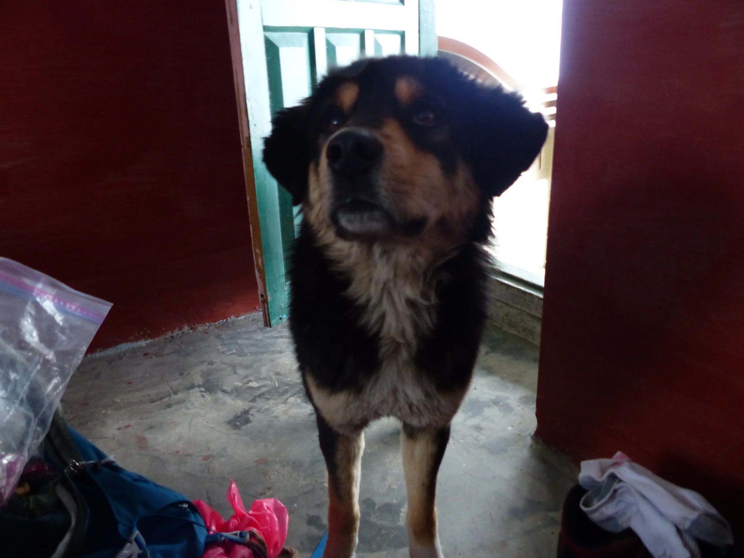 With the altitude getting higher again, it was pretty chilly here. From here on out, there's a fire ban, so there won't be any hot showers or heating. The room had wooden walls and the floor was concrete...the same as it was outside. We actually ended up duct taping the holes in our door.
