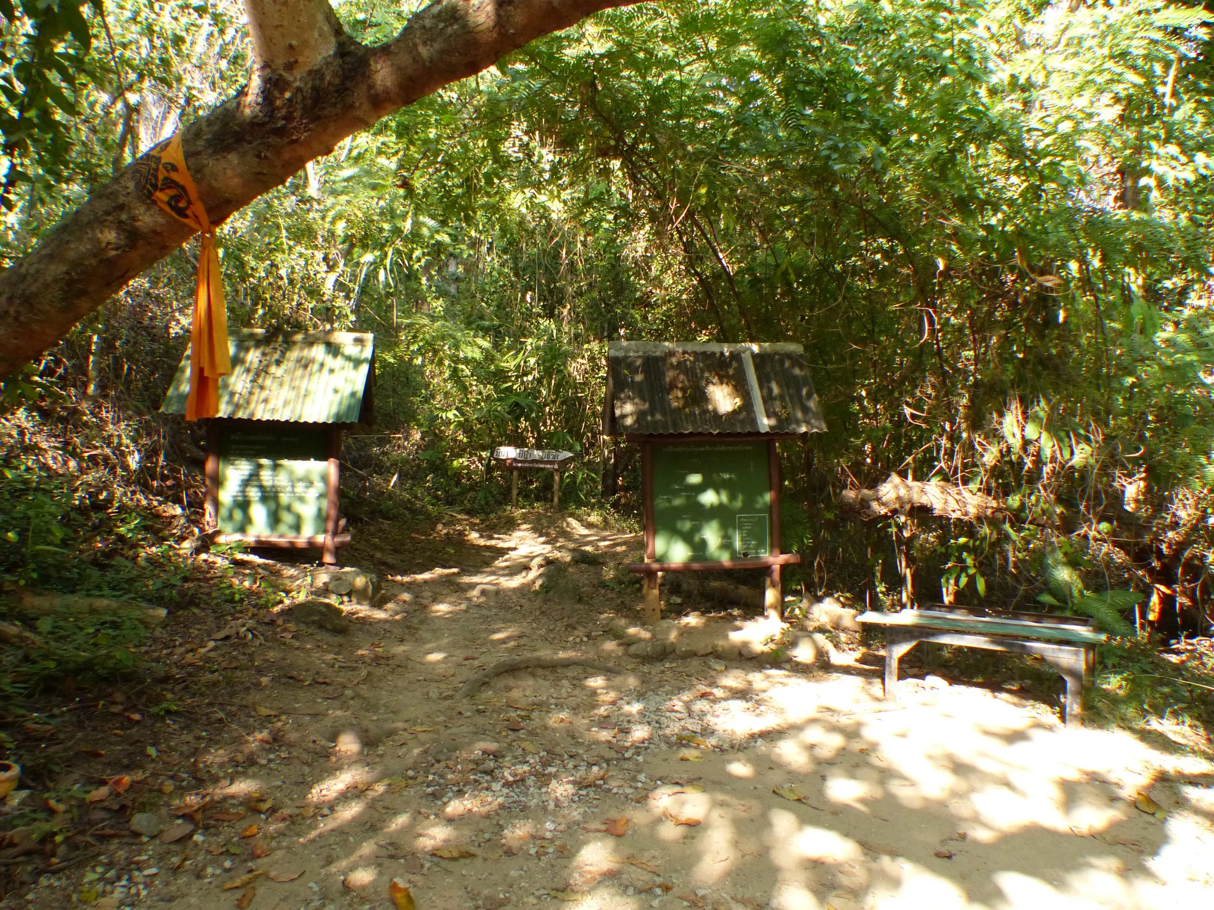 The entrance of the trail starts at the end of Doi Suthep Road, past Chiang Mai University and behind Chiang Mai zoo. We took a red truck (red songthaews) to this point (20 baht each). This can be confusing to explain to a driver, since he originally took us to the wrong place. Just make sure you say Doi Suthep Road