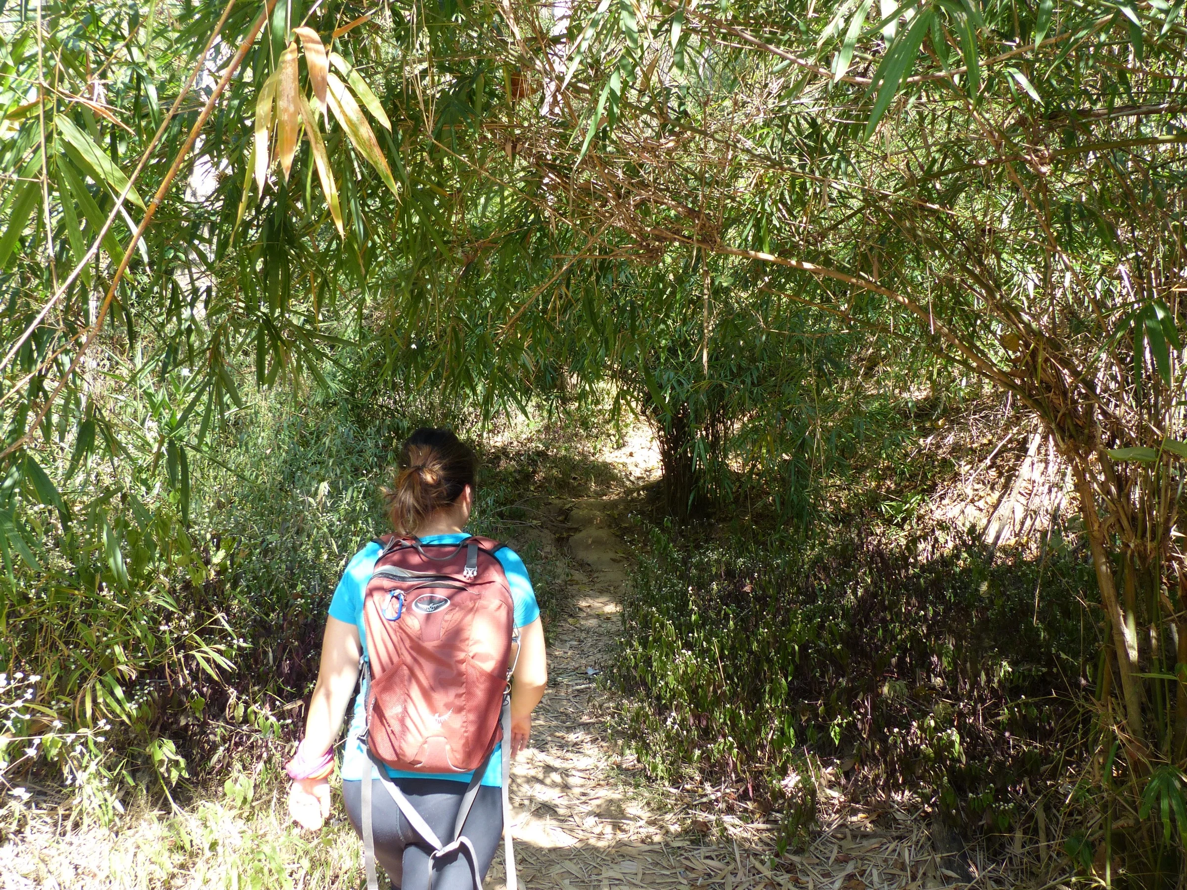This trail isn't as consistently marked, but well-travelled. So, watch out for any yellow paint markers on the ground. There's one section where you'll reach a fork in the trail. Take a left at this point. The trail will eventually turn into clay stairs until you reach the road, so get ready to walk up some steps.