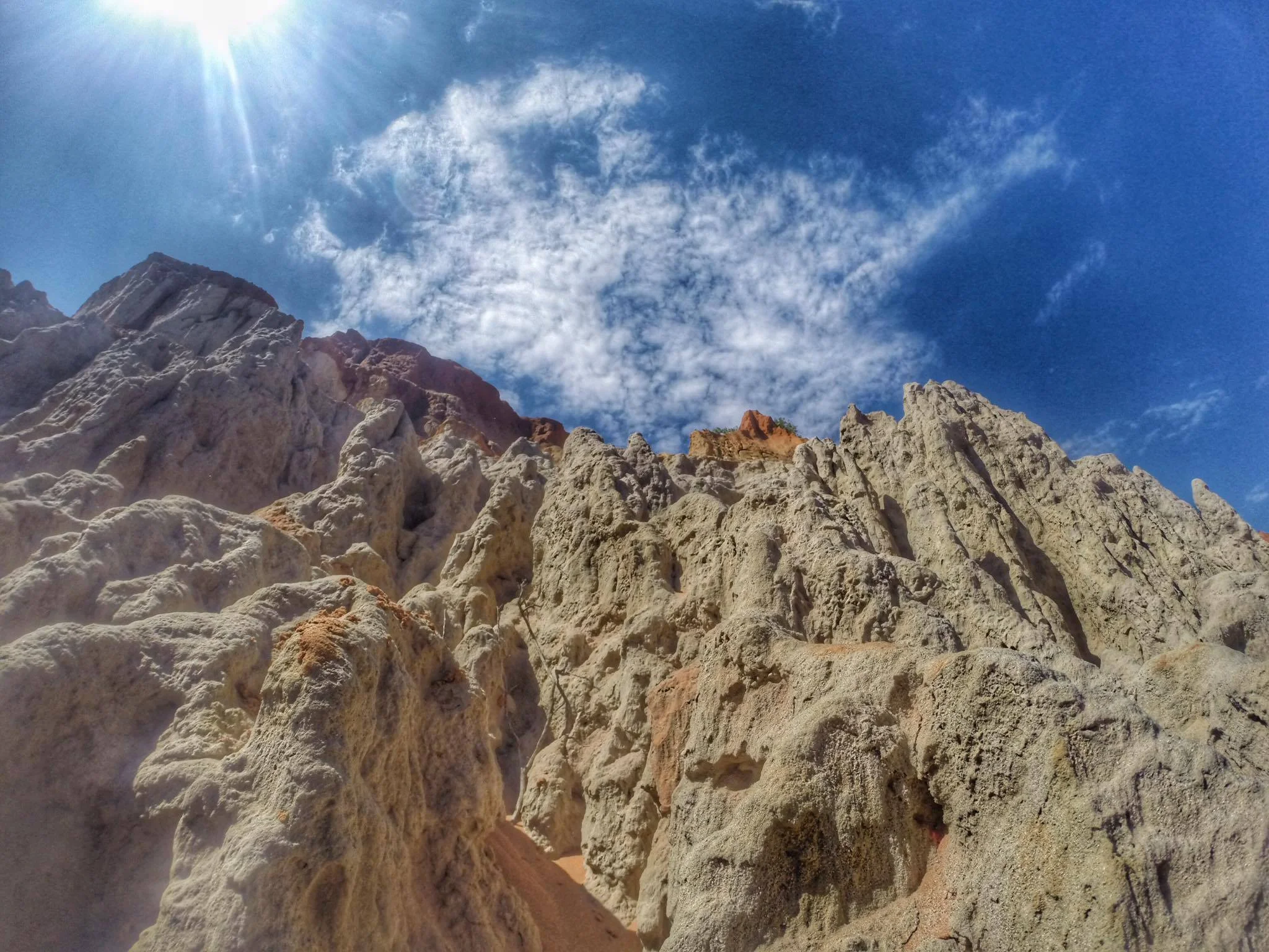Along the way, you'll see a an ostrich ride farm (which I don't condone) and a restaurant. Keep going and you'll start to see beautiful red and white cliffs. The contrast is quite beautiful, especially on a clear day with the blue sky.