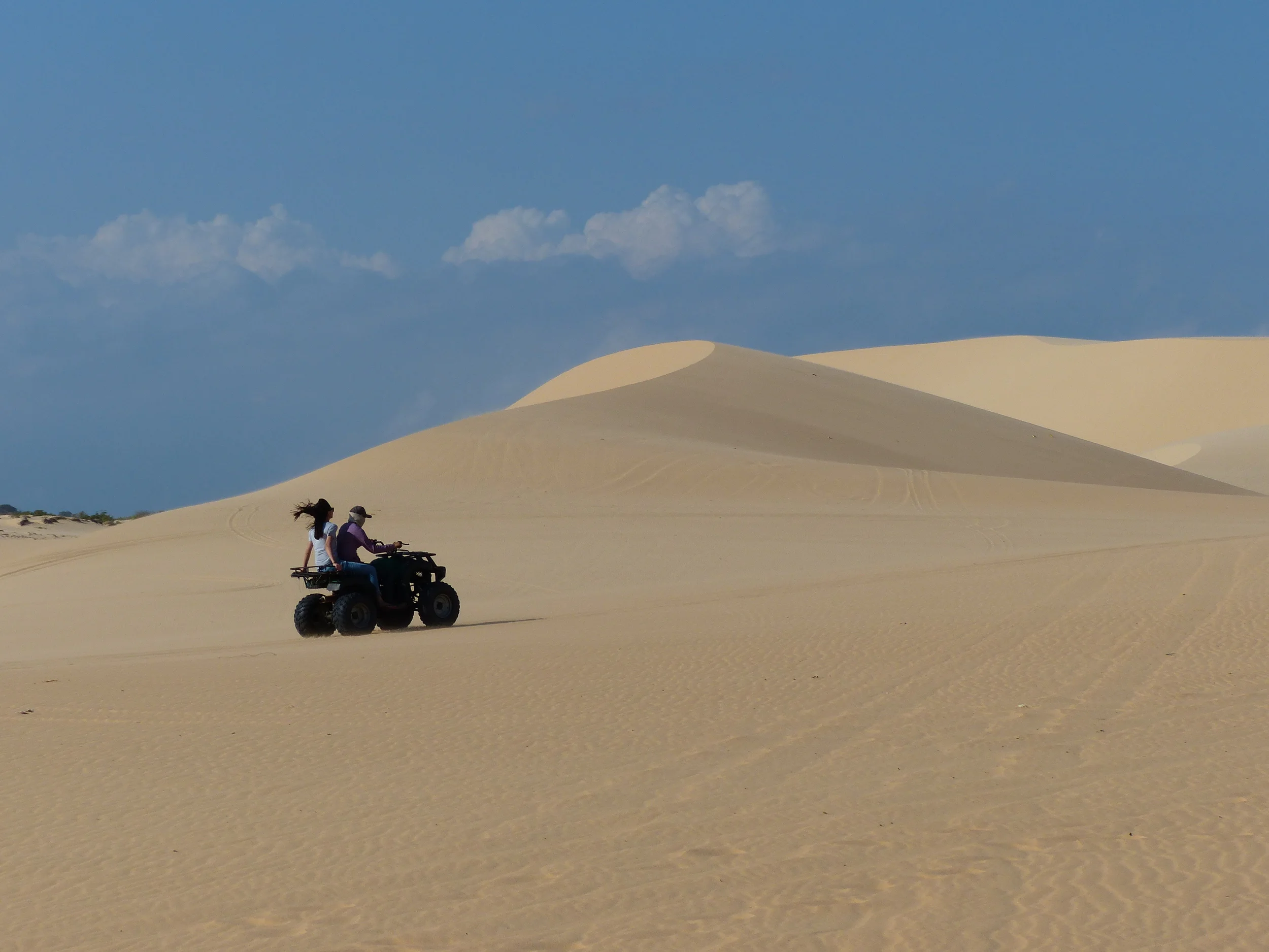 The white sand dunes are about 30 minutes from the city. Once you get there, you'll need to pay an entrance fee of 10,000 dong. You'll have the option of renting a jeep or quad. The jeep costs 500,000-600,000 for the whole jeep which can fit 5-6 people. The quad costs 300,000 total, which fits two people.